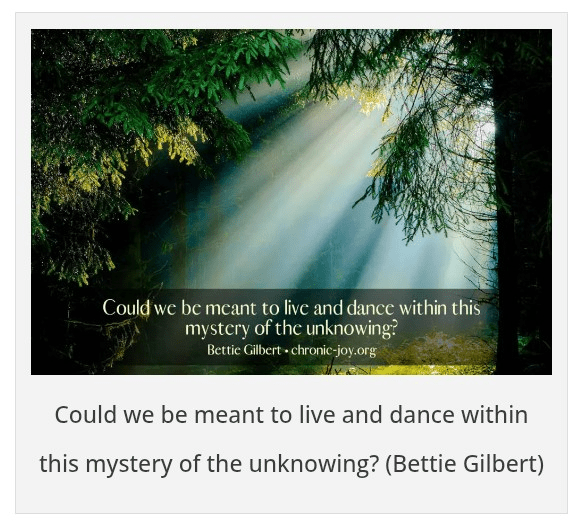 I first read your writing on Chronic Joy’s website and found it sohelpful that I printed it to hi-lite and reread when needed again and again. I tried to thank you on Chronic Joy’s site, but for some reason it wouldn’t go through, so I’m happy to have this additional opportunity. Here’s what I had written and it still holds so true!